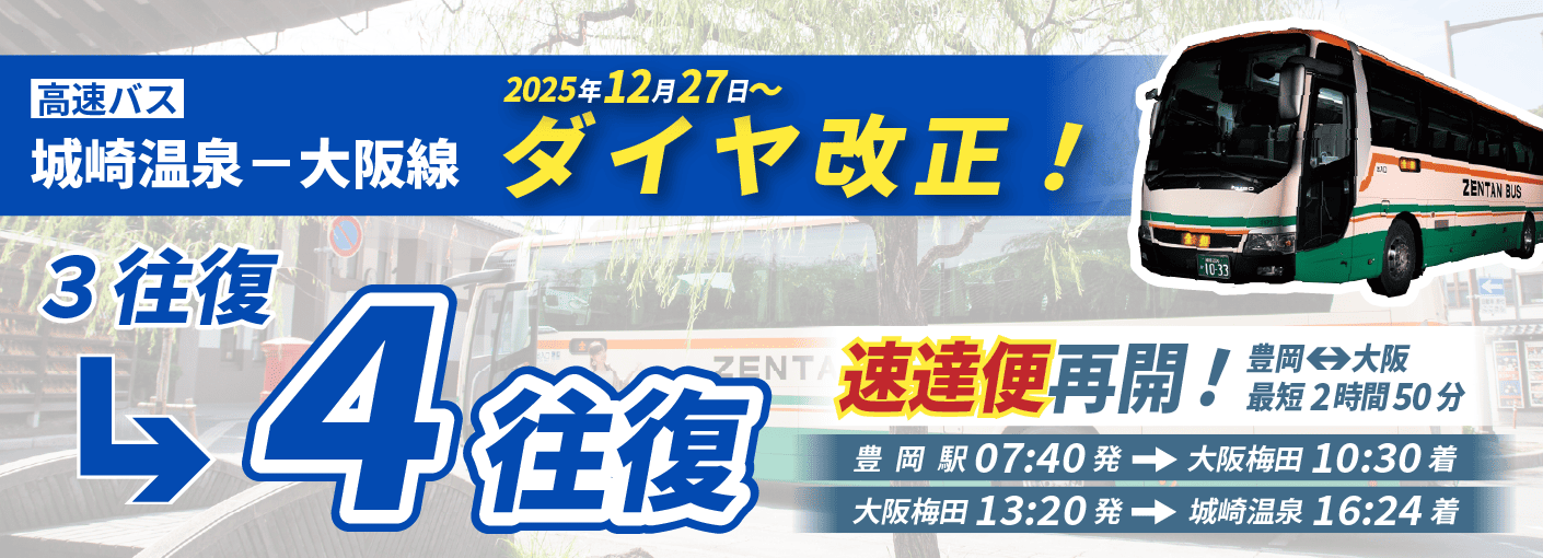 【高速】12/27- 城崎温泉-大阪線が4往復に