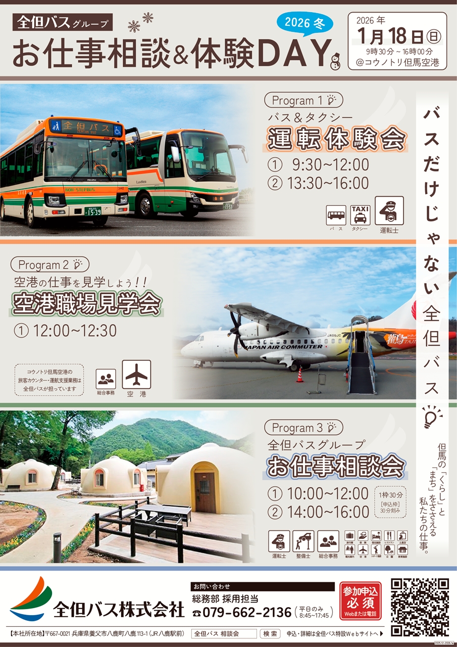 当日は「全但バスグループ お仕事相談&体験DAY」を開催します。