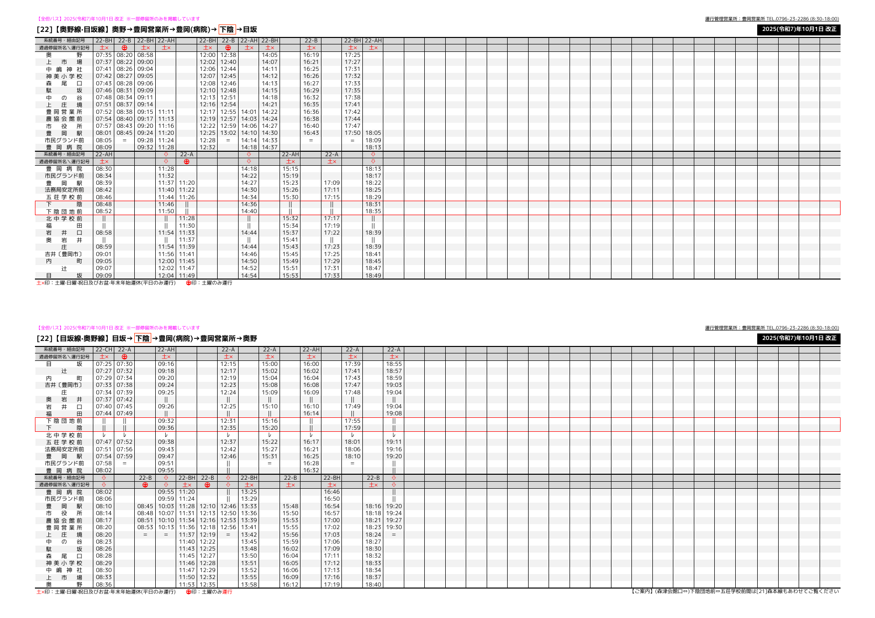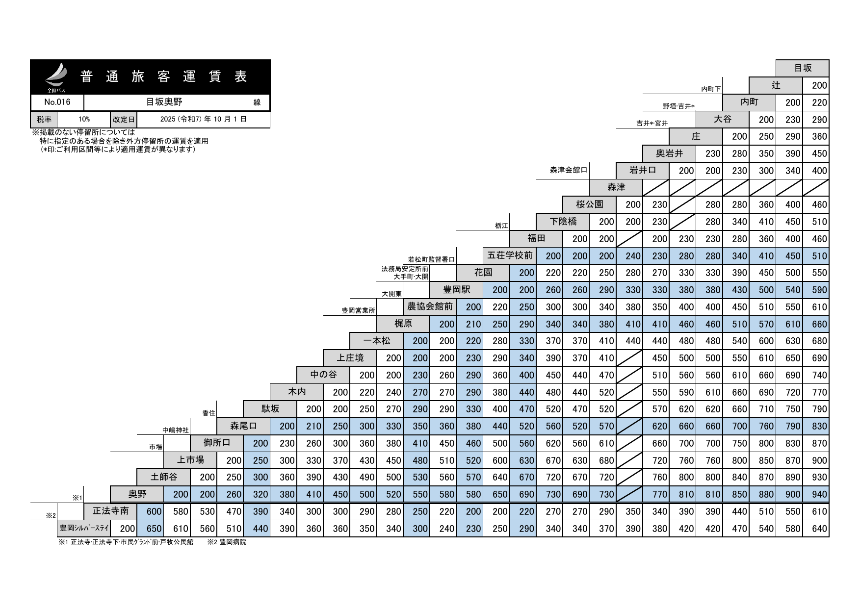 [運行区間]奥野~豊岡営業所~豊岡(駅・病院)~目坂