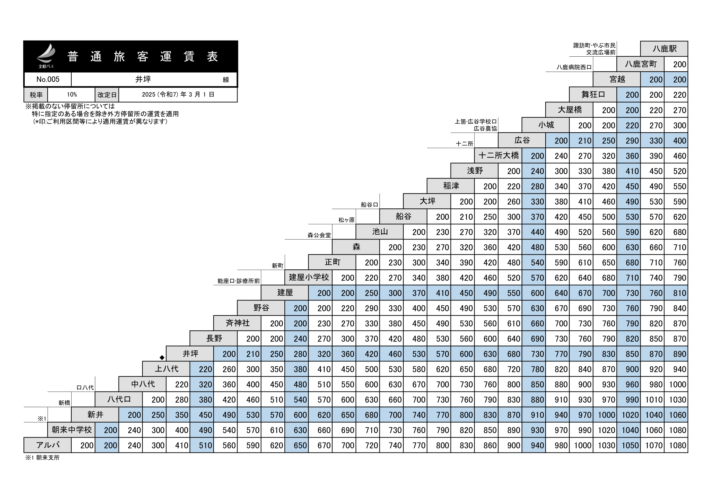 【重要なお知らせ】 [53][55] 竹ノ内よふど線:竹ノ内~秋葉台~和田山駅~朝来医療センター~山東支所~よふど温泉間については、2025(令和7)年10月1日改正をもって運行を休止しました。 長年にわたり全但バスをご利用いただきありがとうございました。 |