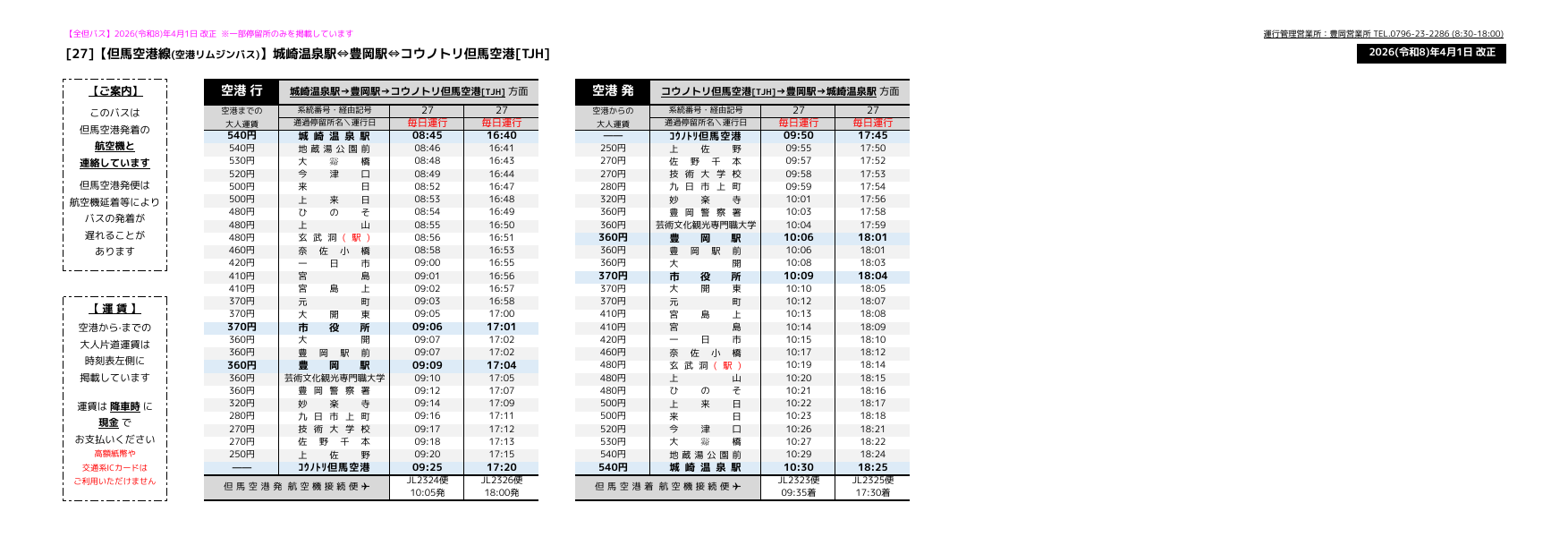 [運行区間]城崎温泉駅~豊岡駅~コウノトリ但馬空港(TJH)