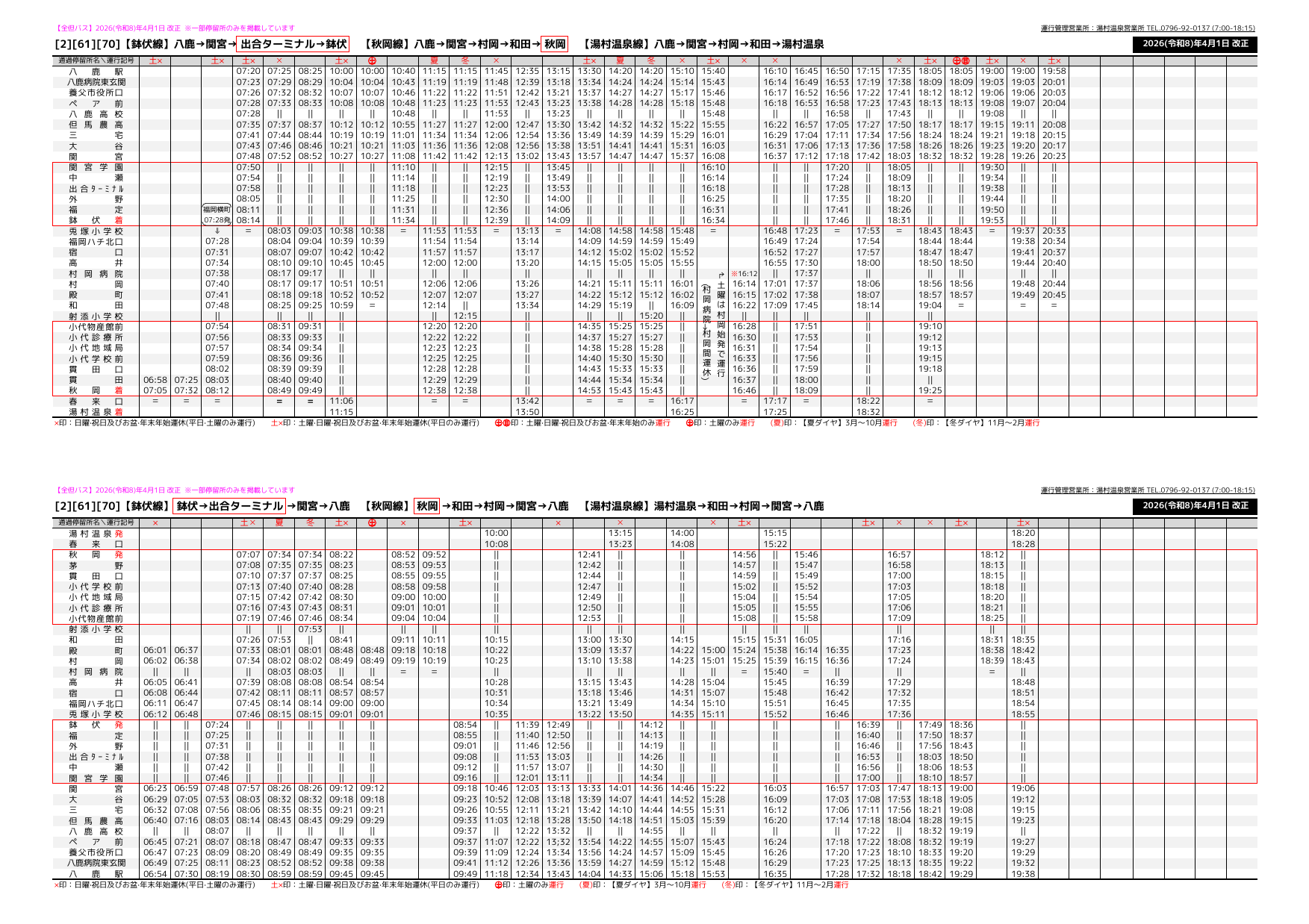 [運行区間]江原駅~日高病院~神鍋温泉ゆとろぎ前~東河内