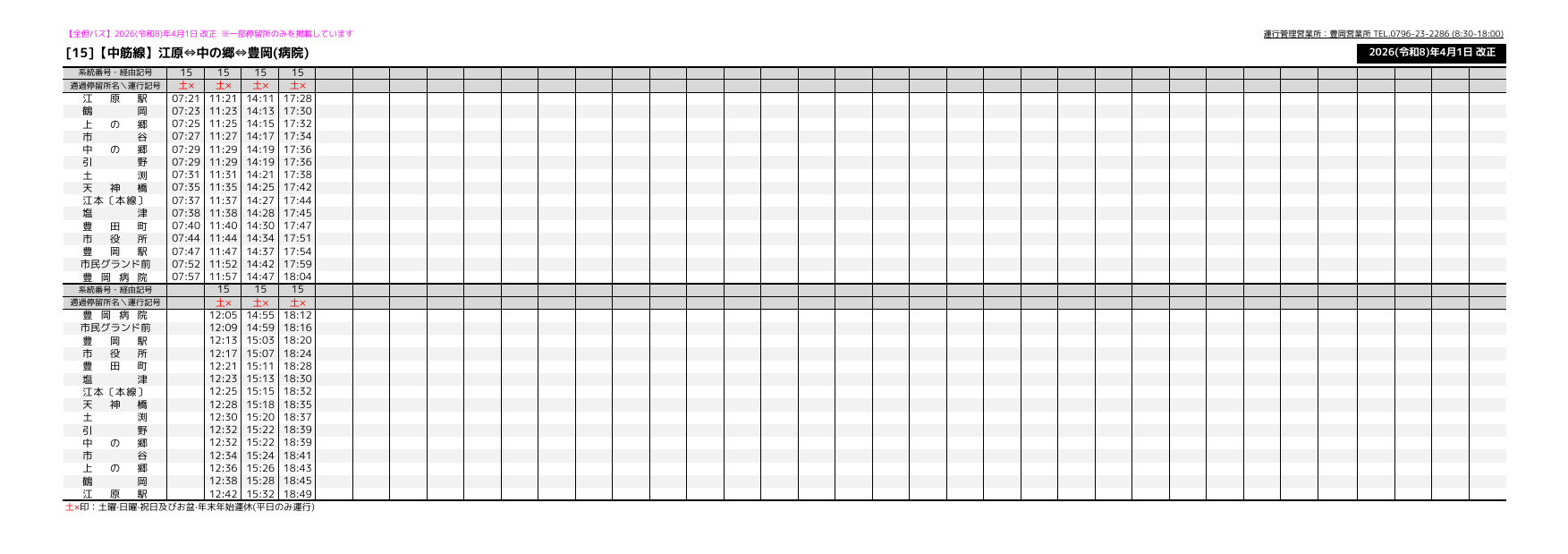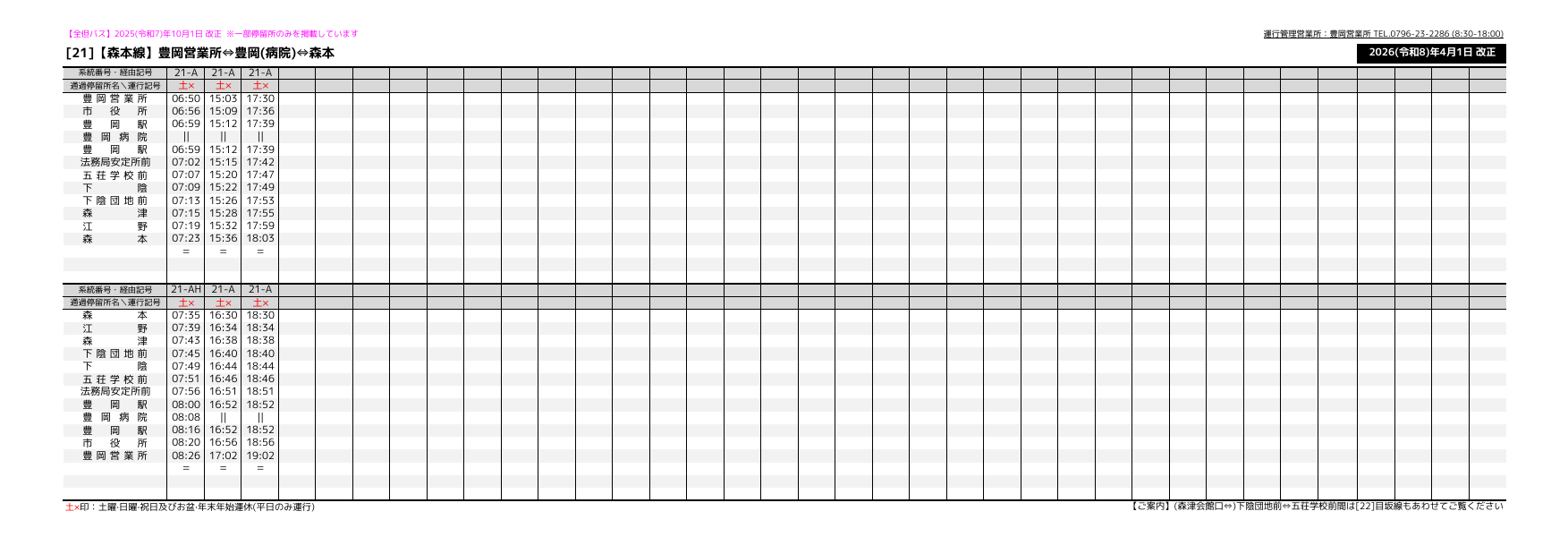 | × | 日曜・祝日及びお盆・年末年始 運休 (平日・土曜のみ運行) |