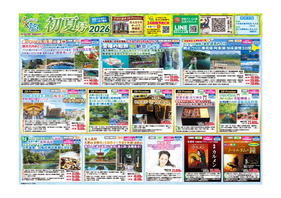 最新のパンフレットより全但バスのバスツアー、らく旅のプランをご覧いただけます。