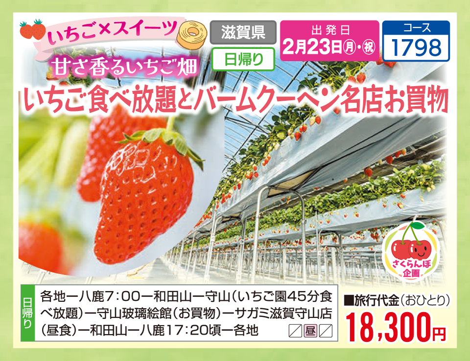 いちご×スイーツ 甘さ香るいちご畑 いちご食べ放題とバームクーヘン名店お買物【さくらんぼ企画】