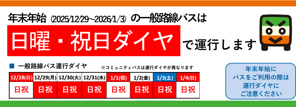 【路線/高速/コミュニティ】年末年始(2025-2026)の運行ダイヤについて