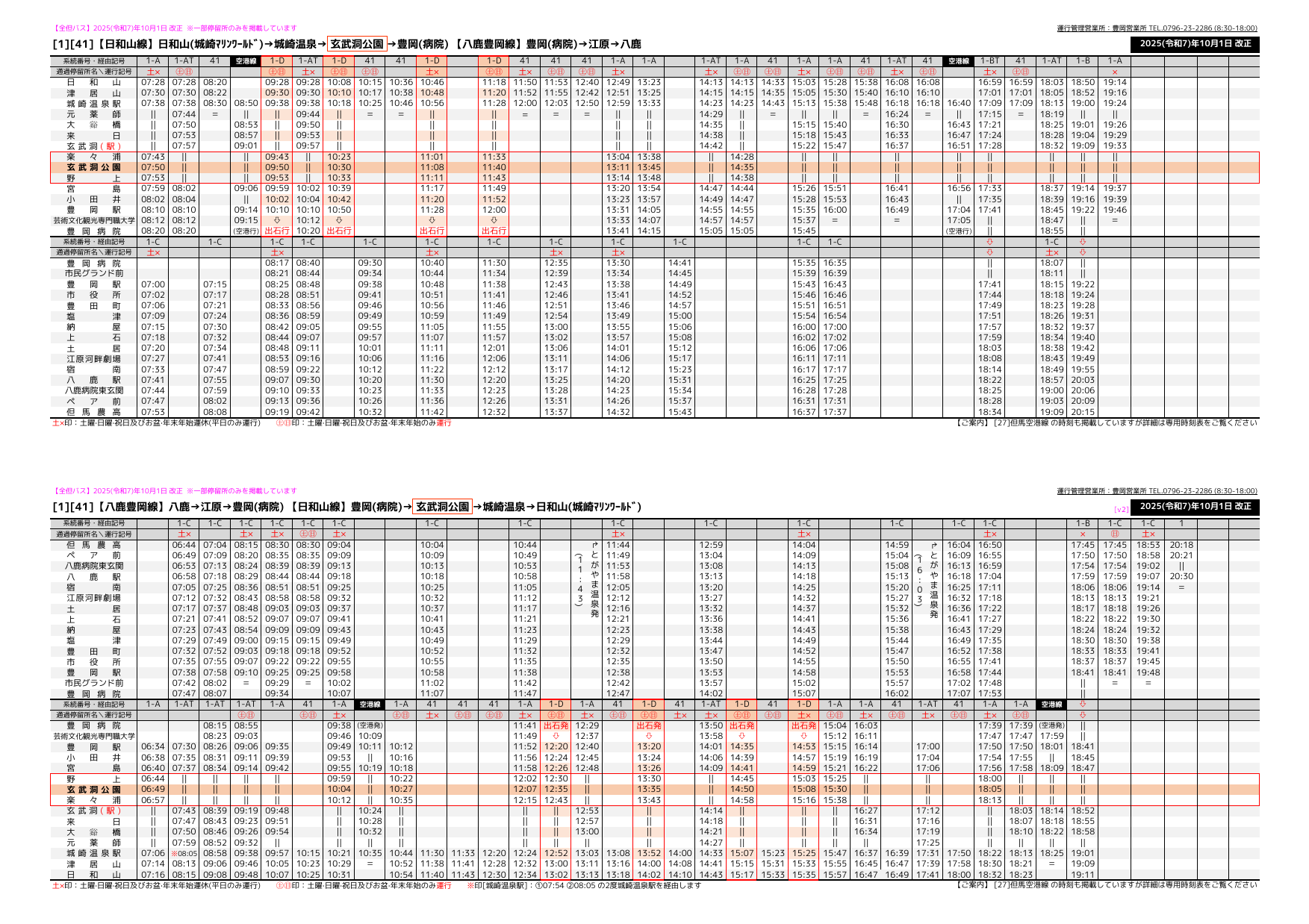 ※日和山9:28発豊岡病院行(城崎温泉駅9:38発)の便は東山公園で10分程待機し、9:48頃に城崎温泉駅に入ります。