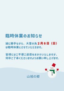 2月8日(日)臨時休業のお知らせ